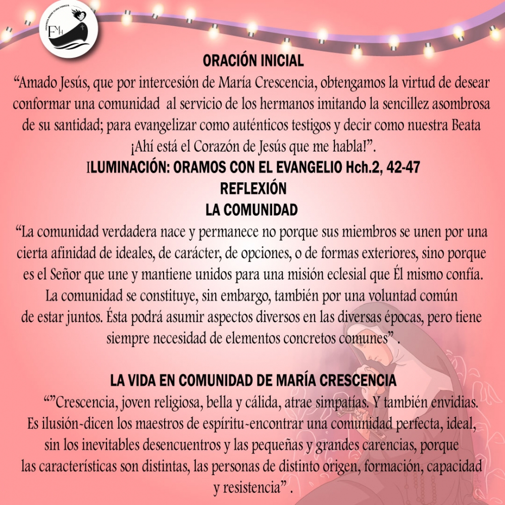 “Amado Jesús, que por intercesión de María Crescencia, obtengamos la virtud