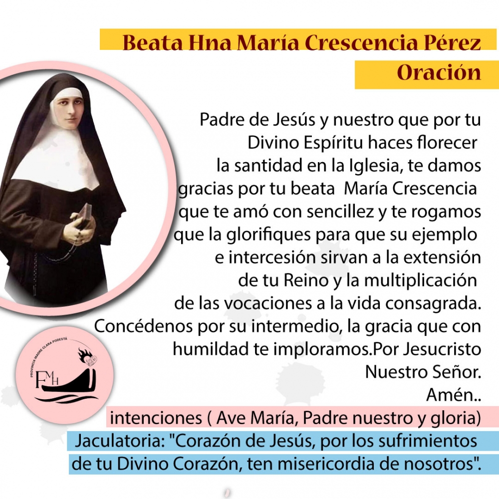 DE LA BEATA MARÍA CRESCENCIA PÉREZ