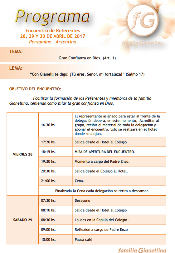 LEMA: “Con Gianelli te digo: ¡Tú eres, Señor, mi fortaleza!” (Salmo 17)
